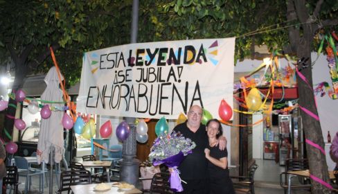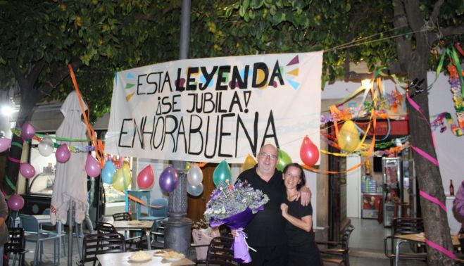 Sin que lo supiera, adornaron el acceso al bar a donde llegó, como cada día, sobre las siete de la tarde. Juan se encontró con esta singular recepción de amigos, compañeros de oficio y de muchos clientes habituales. Su reacción no pudo ser otra que la emoción ya que fue la última tarde en la que abrió el establecimiento. Al día siguiente comenzaba otra etapa en su vida ya alejada del trajín diario del bar.