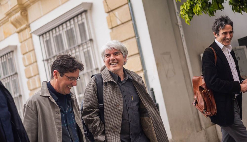 La jornada en Jerez da comienzo en lo que se conoce como la hora de comer. Juan Bonilla, que reside desde hace años en Mairena del Alcor, llega a Jerez acompañado de Nacho Garmendia, amigo y editor del libro para Athenaica, y de Marie Cristine, editora de Renacimiento. En Jerez les espera en El Gorila un pequeño grupo formado por Fernando Taboada, profesor de Filosofía y columnista en excedencia, que horas después será el presentador del libro; Pedro Ingelmo, reconocido periodista ahora en segunda actividad, y este cronista. Tras los abrazos entre conocidos y las pertinentes presentaciones entre los que no, el grupo se dirige a comer a Juanito. En el camino, nos encontramos con el escritor José Mateos, que está en la terraza de la Cruz Blanca, que después de dar un abrazo a Bonilla, nos recrimina –bueno, más bien le recrimina a Taboada– que no se le haya invitado al encuentro. Mateos y Bonilla se conocen desde hace muchos años e incluso han colaborado en varios proyectos periodísticos. Mateos intentará sumarse luego, dice, cosa que no ocurrirá, que el hombre ya avisó que tenía el día muy ocupado.