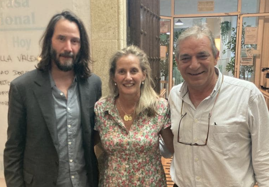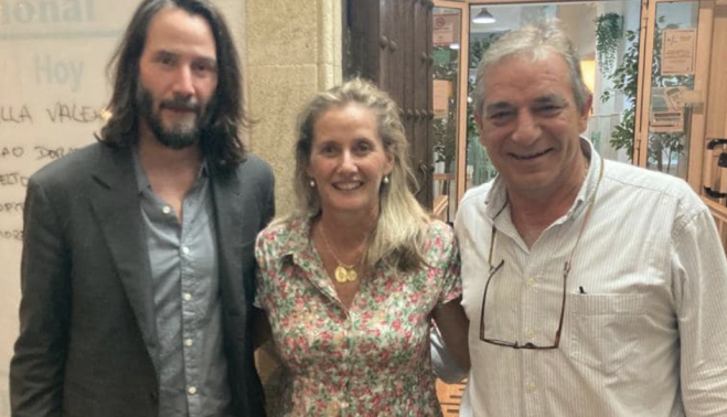 De momento, a cuentagotas, siguen filtrándose en las redes fotos y momentos vividos por Reeves junto a un grupo de amigos en Jerez. En la noche del pasado miércoles cenó en el bar Bocarambo, en el Mamelón, y anoche se le vio por el Arenal y por la Cruz Vieja, camino al monumento de Lola Flores y la gastrotaberna Atuvera.