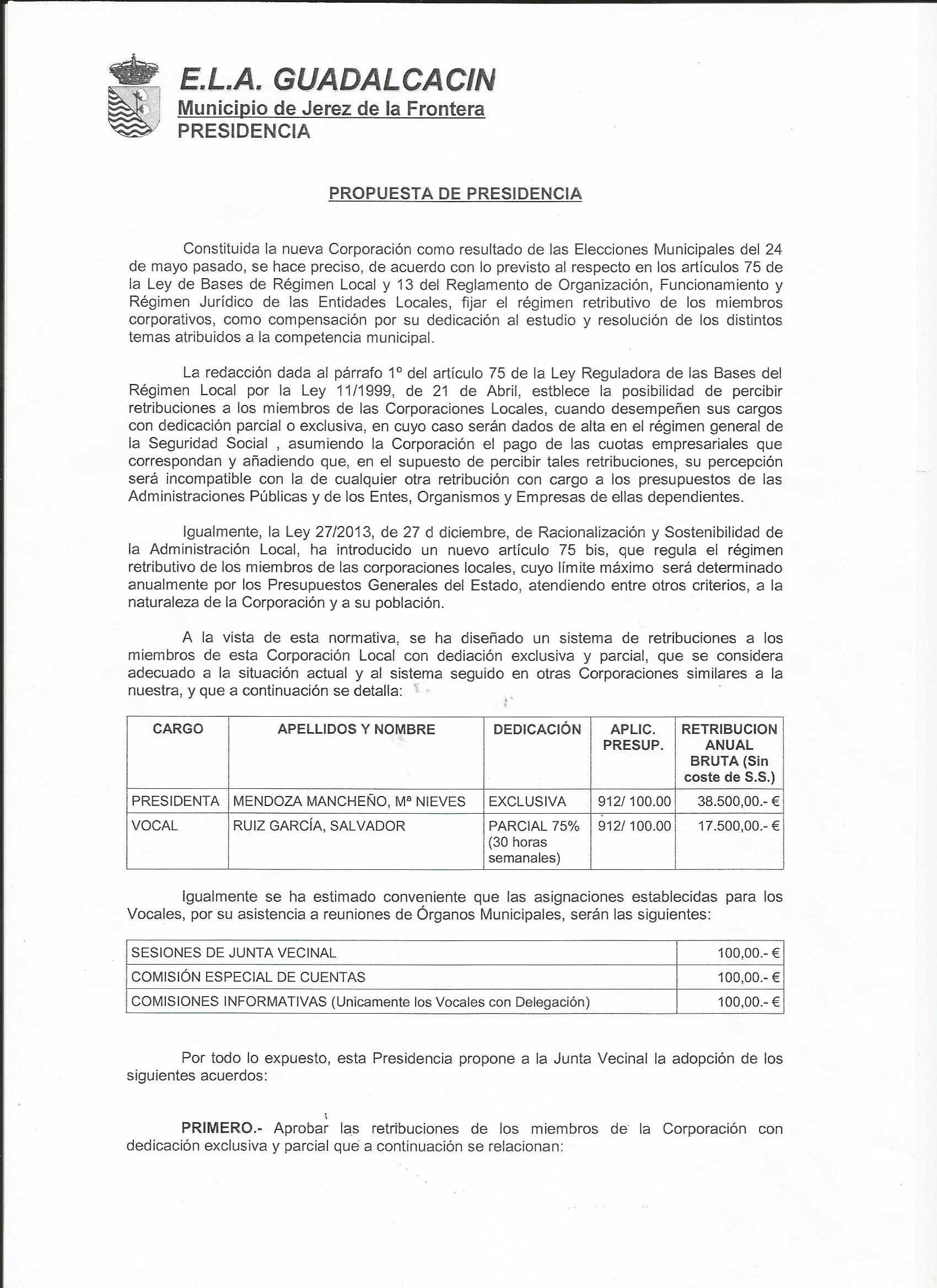 “¿Qué hago? ¿Pido perdón por lo que cobro?”, se pregunta irónicamente Mendoza, que asegura que respeta a los que la critican, aunque apunta: “Lo que no me parece es que antes que cobraba menos no se ha publicado y ahora sí, no estamos siendo justos”. La propuesta del salario que percibirán tanto la alcaldesa como el vocal socialista Salvador Ruiz (17.500 euros brutos anuales por 30 horas semanales), publicada por Mira Jerez, recoge que el ayuntamiento pedáneo ha diseñado “un sistema de retribuciones (…) que se considera adecuada a la situación actual y el sistema seguido en otras Corporaciones similares a la nuestra”. Estas retribuciones fueron aprobadas en junta vecinal con los votos en contra del PP, que las considera “estratosféricas” para una población de menos de 6.000 habitantes.