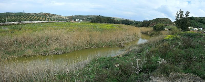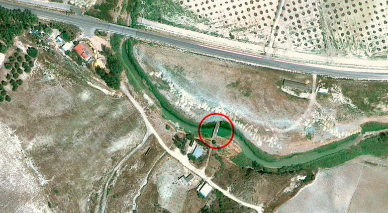 En uno de estos puntos, donde arranca la cuesta de Valdejudíos, entre los cerros del Guijo y de La Mina y los olivares de Macharaví, la carretera atraviesa el curso del Salado de Espera, afluente del Guadalete y río de desbordantes avenidas que, en numerosas ocasiones, inunda los llanos que se abren junto a sus riberas habiendo llegado a cortar en sus crecidas la antigua carretera de Arcos a la altura de la conocida Venta La Mina. En este paraje, como un auténtico superviviente del azote de las furiosas riadas de los últimos siglos, aún sigue en pie un pequeño puente de un solo ojo, edificado con sillares de piedra y ladrillo: la alcantarilla del Salado.