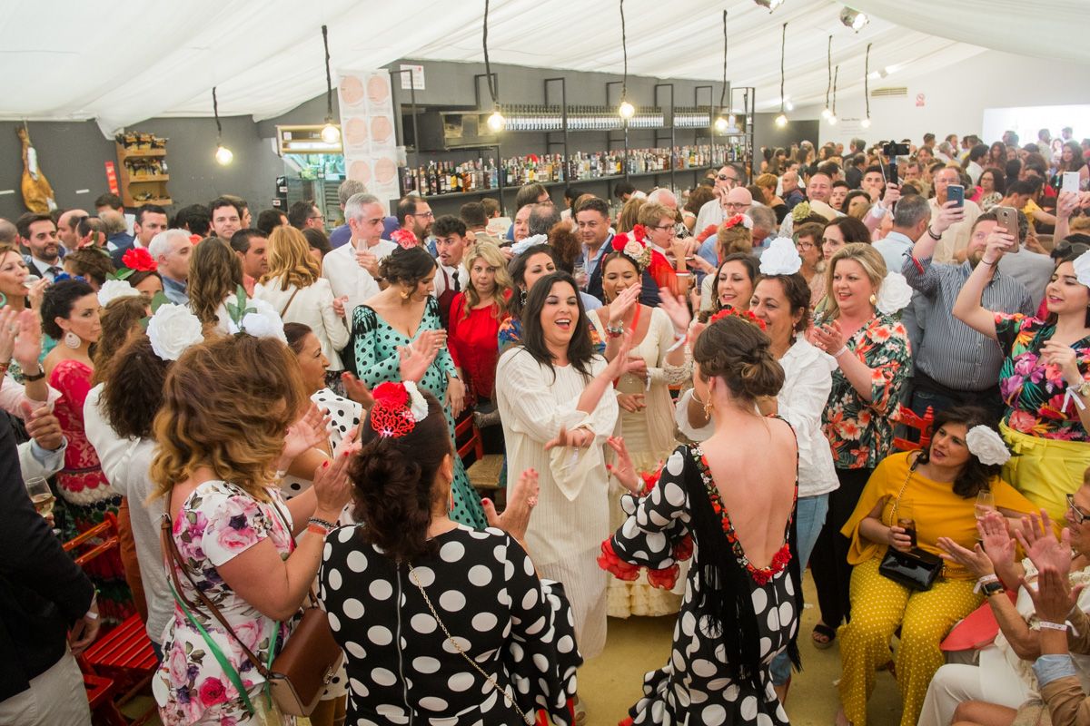 La sorpresa se llevaba mascando desde hace días, pero los novios, Emilio Méndez y Pilar Vargas, no sabían nada. Jueves de Feria del Caballo y la caseta de la Buena Gente repleta de socios y de familiares de uno y otro. Ambos habían quedado en la caseta para pasar un buen rato, pero nunca se imaginaron que en pleno Hontoria celebrarían su toma de dichos.