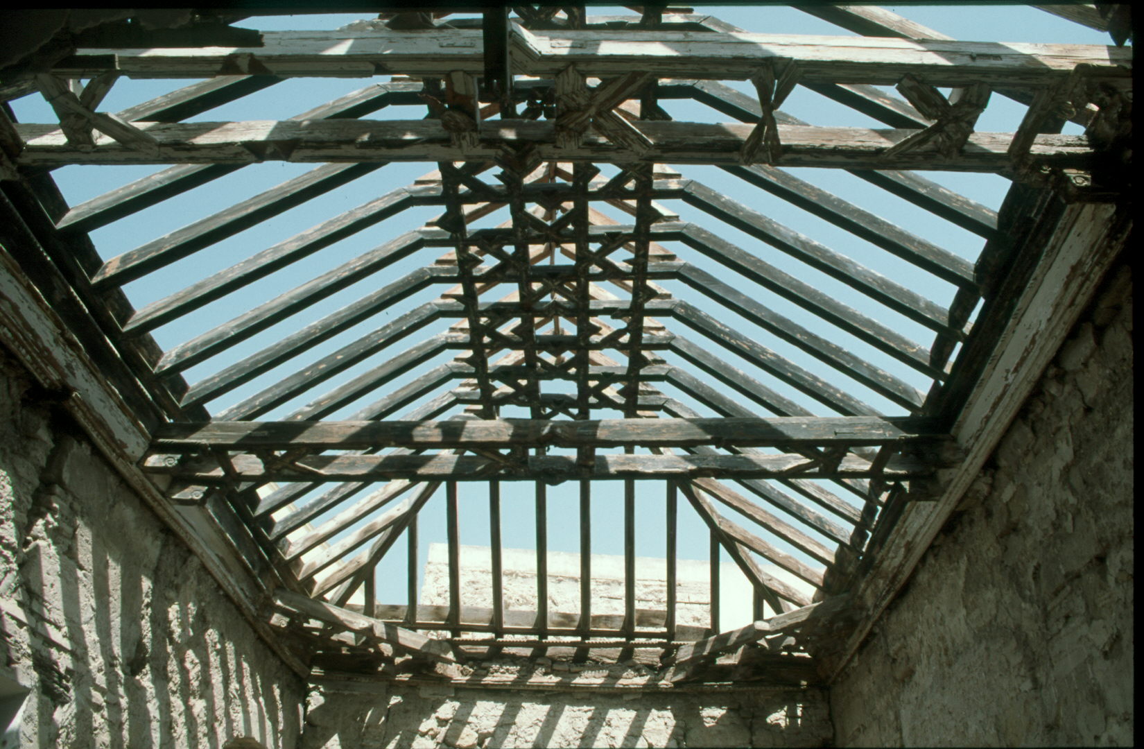 Entramos otra vez en la vivienda y antes de subir la escalera que da a la primera planta, Fernando nos explica que en esta estancia se halló, protegido por uno de los tabiques, los restos de una pintura mural del siglo XV que, se entiende, debió cubrir toda la habitación. Actualmente se expone en el Museo Arqueológico tras ser donada por el propio Fernando. Ya arriba, tras visitar varias estancias, Fernando nos lleva a la que considera la joya de la corona, un salón cubierto con un techo a dos aguas con un artesonado mudéjar, también fechado en el siglo XV. “Se cree que es el más antiguo de los que se conservan en Jerez”, señala el propietario del inmueble.