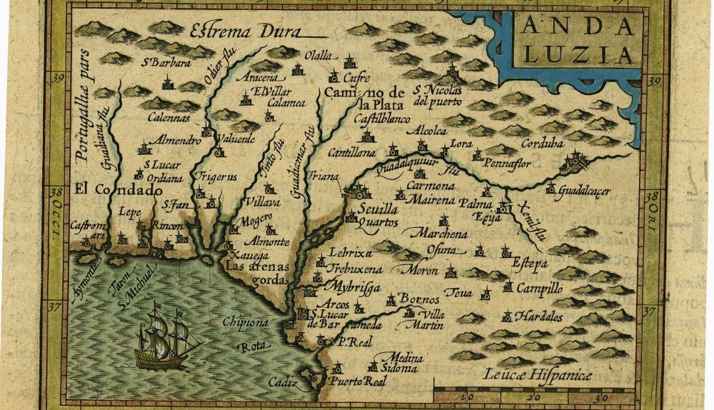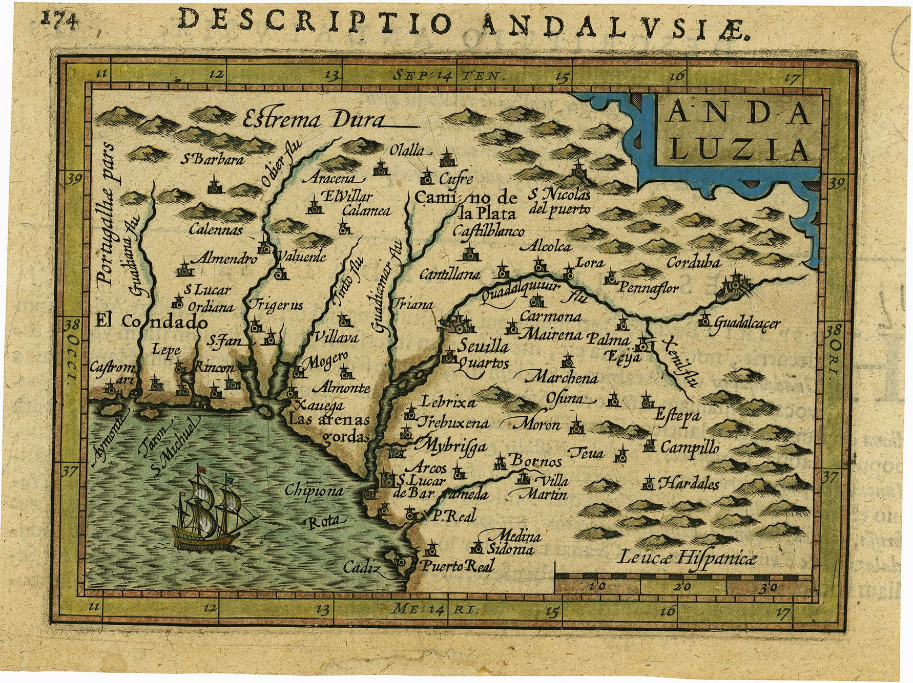 Un día, en la Biblioteca Municipal, en el último cajón de la sala de materiales gráficos, debajo de todos los demás y cubierto por un paño negro, descubrí un viejo mapa de 1606, intitulado "ANDALUZIA NOVA DESCRIPT" por I. Hondius. Era un mapa muy detallado, donde figuraban numerosos pueblos pequeños de Andalucía Occidental y Extremadura. Fijé mi mirada morosamente en la bahía de Cádiz, e inmediatamente me fijé en El Puerto de Santa María, y a continuación me fijé en Rota, Chipiona, Sanlúcar, Trebujena, y mi mirada saltó a Arcos, Bornos, Espera, Medina Sidonia... Entonces me fijé en un espacio desierto en medio, donde yo creía que estaba Jerez de la Frontera, pero allí no había nada: sin embargo, incluso pueblecitos como Torre Alhaquime sí figuraban. Entonces tuve la primera evidencia de que aquel ambiente irreal que yo sentía al pasear por sus calles, se debía a que Jerez era una ciudad imaginaria que en 1606 aún no se había corporeizado...