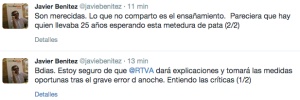 La red social Twitter ha sido un hervidero de comentarios, críticas e incluso de los populares memes. El periodista gallego de El Intermedio Fernando González Gonzo, que hace poco estuvo en Jerez para preguntar a Pelayo por su relación con la Gürtel, ironizaba en su cuenta: "El cachondeíto que se van a traer los de Cádiz con el anuncio de Jerez en mitad de las uvas de Canal Sur va a ser antológico". Otro, como el responsable de Canal Sur en Jerez, Javier Benítez, se tomaban lógicamente más en serio el patinazo: "Bdias. Estoy seguro de que @RTVA dará explicaciones y tomará las medidas oportunas tras el grave error d anoche. Entiendo las críticas. Son merecidas. Lo que no comparto es el ensañamiento. Pareciera que hay quien llevaba 25 años esperando esta metedura de pata".