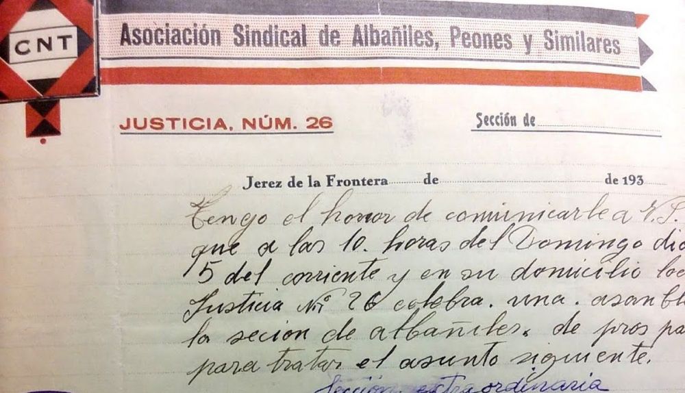 El historiador Diego Caro sintetiza las afinidades políticas de los albañiles jerezanos: “Frente a esta estrategia de los ugetistas, la de los anarcosindicalistas locales fue bien distinta y tuvo dos vías. La primera pasó por la reconstrucción de aquellas organizaciones en las que habían tenido la hegemonía y que quedaron disueltas antes o durante la Dictadura, a lo largo de los años veinte. Así se hizo con los campesinos, al crearse la Asociación General de Trabajadores Agrícolas (AGTA) y el siguiente paso era el control de la Sociedad de Albañiles. El 14 de abril -el mismo dia que se proclamaba oficialmente la Segunda República-, el presidente y el secretario de la sociedad de albañiles legalizada el año anterior, pedían permiso para celebrar una Junta general, no ya en la Casa Colectiva, sino en una nueva sede, en el número 26 de la calle Justicia, para -como si no hubiera servido la primera constitución para nada-, tratar de un nuevo reglamento, constituir la "nueva entidad" y nombrar otra Junta directiva.