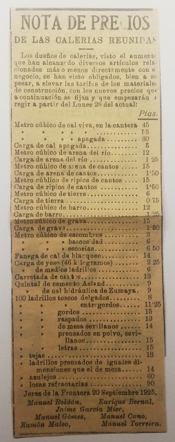 Llama la atención la alta conciencia obrera que tenían los albañiles, canteros, ladrilleros, caleros, etc., de Jerez en el primer tercio del siglo XX. El profesor Diego Caro, en su libro sobre la II República en Jerez, nos narra muy minuciosamente, en distintos pasajes, cómo se organizaba dicho gremio, sus afinidades políticas y sindicales, etc.