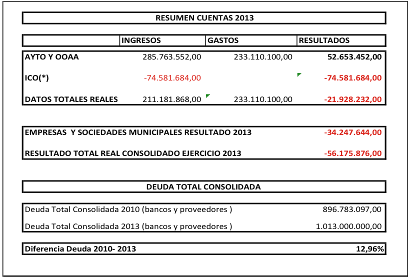 De acuerdo a los datos, presentados esta semana en la comisión especial de cuentas, que refleja la Cuenta General 2013 la situación real es la siguiente, ha detallado ATMJ: