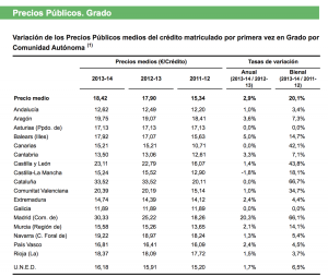 El incremento en el precio de los créditos ha mermado las expectativas de muchos estudiantes que aguantan a duras penas o que, como Laura, se ven abocados a dejar sus estudios. En el informe mencionado anteriormente se apunta que el precio medio del crédito en primera matrícula en España está en 18,42 euros —un 2,9% más caro que el curso anterior—, por lo que de media un curso de grado de 60 créditos, sin repetición de matrícula, cuesta 1.105 euros. En Andalucía, el precio del crédito es el segundo más barato del país —12,62 euros—, solo por detrás de Galicia, donde cuesta 11,89 euros.