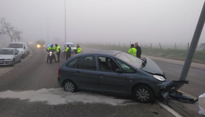 La Policía Local de Jerez interviene en un accidente producido en la avenida Juan Carlos I del municipio, entre las rotondas 3 y 4, donde un conductor perdió el control de su vehículo en un momento en el que la niebla era espesa. El suceso acaba con un herido, que es trasladado al hospital por las asistencias sanitarias. Se trasladan al lugar dos unidades motorizadas y un radiopatrulla de la Policía Local para regular el tráfico. Infraestructuras intervendrá en el alumbrado público para reparar una farola que ha sido dañada.