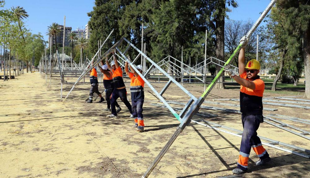 De este modo, se espera que la mayor parte de las estructuras estén a disposición de los adjudicatarios unas tres semanas antes de la celebración de la Feria para proceder al montaje de las casetas. A este respecto, Infraestructuras ha iniciado las pertinentes tareas de revestimiento de las farolas y adecentamiento de las parcelas en las que se ubicarán las casetas, con el diagnóstico de necesidades sobre puntos de luz y agua con vistas a la instalación de las mismas.