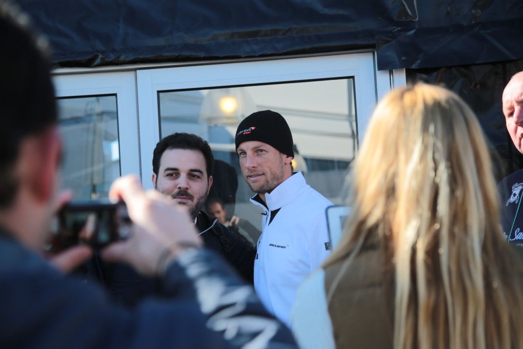 Una vez dentro, donde se concentraron más de 20.000 espectadores según datos del propio Circuito, los aficionados se quedaron con las ganas de ver más a Fernando Alonso, que solo pudo completar seis vueltas a bordo de su nuevo McLaren. No fue un buen estreno. Estuvo más tiempo en el hospitality del equipo que en la pista, por lo que esa zona también la rondaron aficionados deseosos de encontrarse con él y echarse una foto. Tarea harto difícil porque no se dejó ver mucho, aunque se le pudo ver fugazmente acompañado por su padre y su pareja. Sí estuvieron más accesibles Jenson Button o Lewis Hamilton, que pasearon por el paddock para deleite de los aficionados que consiguieron salir del Circuito con fotos suyas en sus teléfonos móviles.