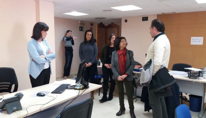 La teniente de alcaldesa de Igualdad, Acción Social y Medio Rural, Carmen Collado, ha realizado una visita a las oficinas centrales del Servicio de Ayuda a Domicilio, ubicadas en el edificio Divina Pastora, en calle Cádiz, donde ha comprobado in situ la normalidad con que se está desarrollando la actividad del servicio, que desde este primero de año ha pasado a manos públicas. Durante la inspección a las instalaciones, Carmen Collado ha estado acompañada por Francisco Ramírez, gerente de la sociedad municipal Comujesa, entidad pública que ha asumido la gestión del citado servicio, así como por Juan Jorge Racero, jefe del Departamento de Dependencia, Discapacidad y Mayores.