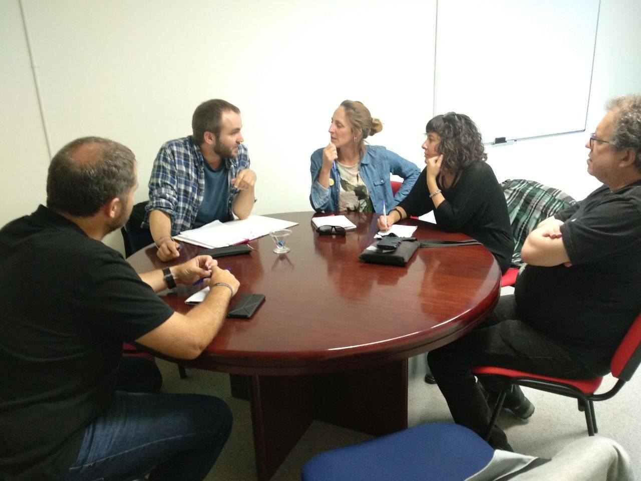 Miembros de Ganemos, reunidos con el sindicato Inquilinos.