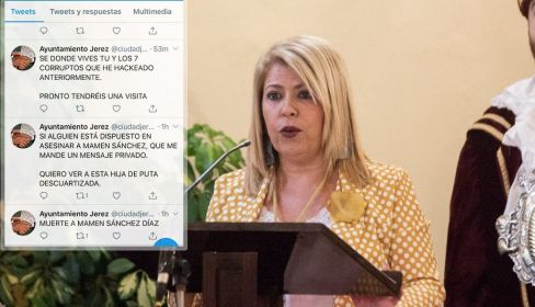 En torno a las dos de la tarde, el perfil del Ayuntamiento, llamado @ciudadjerez, cambió a su nombre a @ciudadjerez_, modificó la imagen de perfil —por dos manos estrechándose con un fajo de billetes entre ellas—, y empezaron las amenazas. “Si no quieres que tu gente vea tu cadáver, empieza a hacer las cosas bien”, publicaron en la red social, dirigiéndose a Mamen Sánchez, a la que le desearon la muerte en repetidas ocasiones. A ella y a sus seres queridos. “Si sigues así de corrupta mataré a toda tu familia a machetazos”, escribieron luego, explayándose en detalles escabrosos.