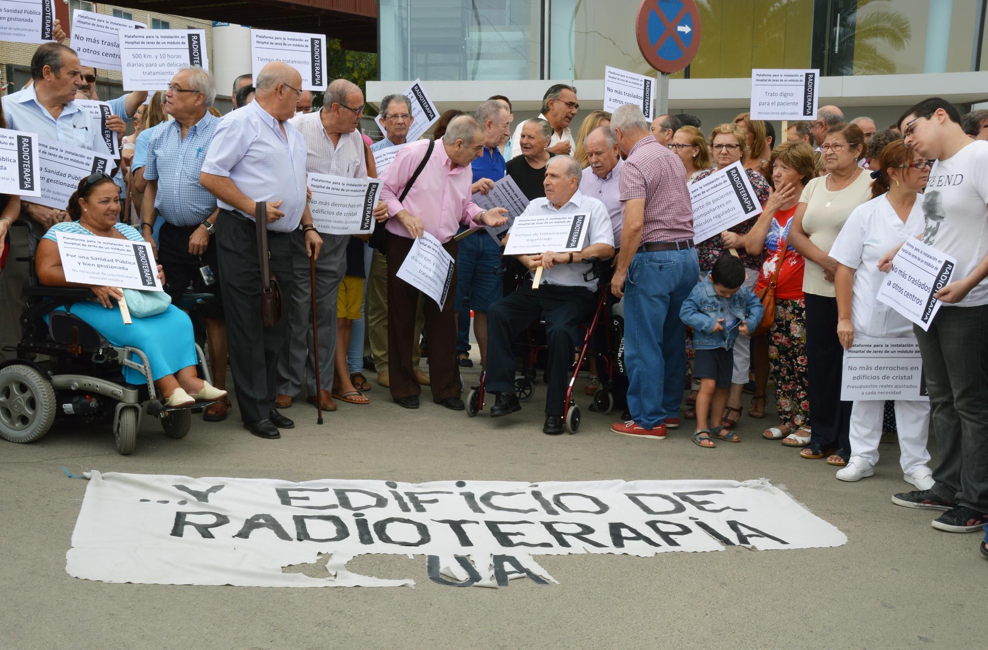 El anuncio ha coincidido con la concentración celebrada a los pies de este edificio convocada por la federación vecinal ‘Solidaridad’ y la Plataforma de Pacientes con Tratamiento de Radioterapia, y a la que han asistido enfermos, asociaciones de vecinos, partidos políticos, sindicatos y colectivos. El acto ha sido apoyado por más de 200 personas que portaban pancartas con diferentes leyendas. Agustín García Lázaro, presidente de la plataforma, ha leído un manifiesto en el que solicitan a la delegada territorial de Sanidad, Miriam Alconchel y al director del Hospital de Jerez, Manuel Lubián, la apertura del módulo de radioterapia “por procedimiento urgente, que reduzca el tiempo de su puesta en servicio”, y que además se dote de un segundo acelerador lineal. Asímismo, exigen la apertura de la bolsa de trabajo o del concurso por oposición con el objeto de dotar a la unidad de dos turnos de trabajo “dado el alto número de pacientes”.