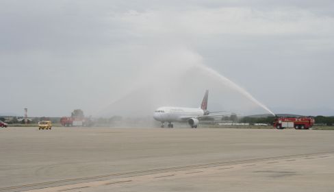 El Aeropuerto celebra el 'bautismo' del primer vuelo de Brussels Airlines que aterriza en La Parra y que operará dos días a la semana durante la temporada alta.