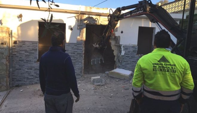 Samantha Gallardo y Domingo Grimaldi inician la demolición de la vivienda en la que han residido estos últimos cinco años, después de que la expareja de ella y presunto maltratador, la denunciara por construcción ilegal en Las Pachecas.
