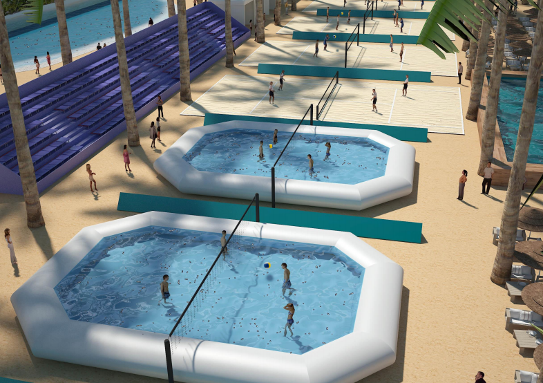 Por su parte, desde Puro Evento explican que la del González Hontoria será “la primera playa artificial en Europa de estas características y estas dimensiones”. En su área deportiva contará con tres piscinas, de 4x4 metros, para practicar water volley: dos canchas de paleta playa, dos canchas de volley playa, una cancha de fútbol volley, y cuando así se requiera, todas estas pistas de arena se convertirán en una pista grande de fútbol playa. A todo esto se sumará una grada con un aforo para 400 personas y una zona de carpas habilitada para vestuarios.