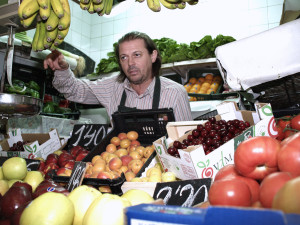 En el otro extremo del mercado están los otros tres puestos que siguen abiertos: una frutería, una carnicería y un almacén. En total, siete resisten el temporal. Manuel Junquera regenta la frutería desde hace cuatro años, cuando cogió el testigo de su madre, que estuvo medio siglo al frente del negocio. "No tenemos ni un duro, llevo cuatro años perdiéndole dinero. Lo que tenía juntado me lo he comido. Me han dicho que en agosto tenemos que estar allí, porque se han atrasado por culpa de nosotros, por no irnos allí, porque no hemos podido trasladarnos", comenta esperanzado. Manuel apunta: "Aquí da pena entrar, de la mierda que hay. Puedo tener la fruta muy bonita, pero no entra la gente... Esto una cueva, como yo digo. Los cuartos de baño dan pena, asómate, hay un boquete, como cuando yo hice la mili en Melilla... Esto es una ruina".