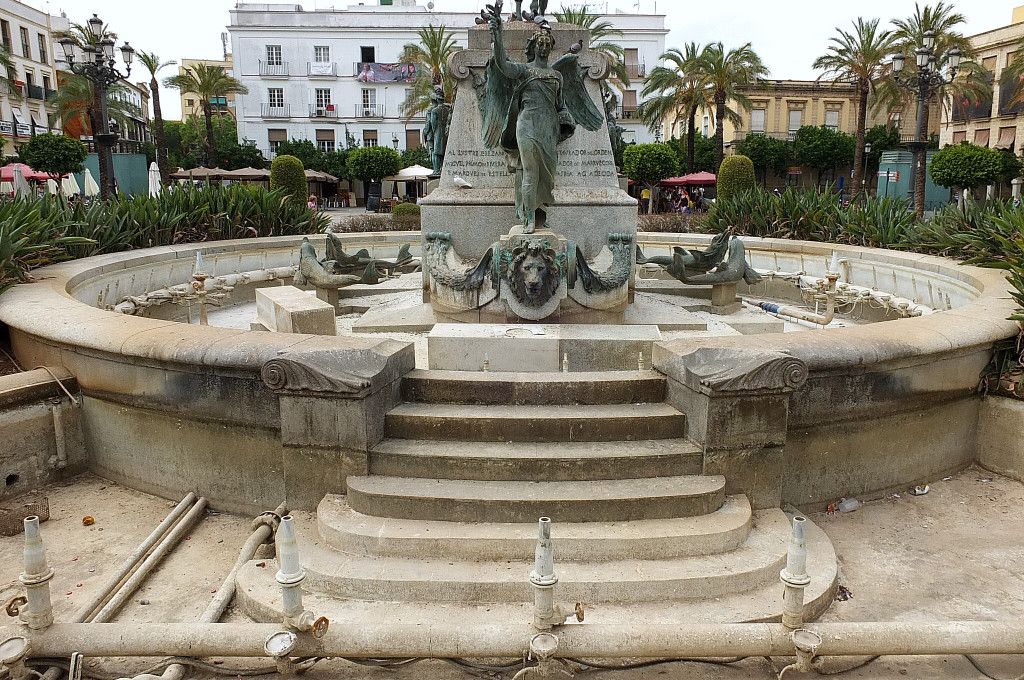 El hecho de que el PP directamente pase de complicarse aplicando una ordenanza que prevé sanciones de hasta 3.000 euros por infracciones muy graves no ayuda a mejorar la imagen y la armonía estética de un enclave estratégico que es paso obligado para los visitantes de una ciudad que quiere vivir fundamentalmente del turismo. Y si achacable es la pobre imagen que ofrecen algunos negocios, no menos es la dejadez en cuanto a conservación que presenta la fuente, los jardines que decoran (antes, al menos) la misma, y el conjunto escultórico de Mariano Benlliure. Entre pizarras, rótulos de grandes dimensiones que 'decoran' caóticamente el enclave, las palomas 'acosan' al siempre controvertido pero icónico monumento ecuestre del general Primo de Rivera. Además uno observa que los chinos del empedrado de la plaza son un ir y venir, reventados. Solería negrísima, con suciedad incrustada desde hace años, y macetones huérfanos de vida vegetal.