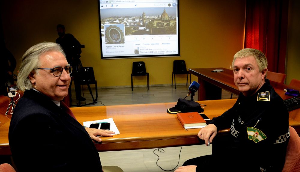 El teniente de alcaldesa de Urbanismo, Dinamización Cultural, Patrimonio y Seguridad, Francisco Camas, ha presentado junto al jefe de la Policía Local, Javier Andrada, los perfiles oficiales de Facebook (Policía Local de Jerez de la Frontera) y Twitter (@PolicíaLocaljrz) de la Policía Local de Jerez. Junto a ambos igualmente han comparecido los agentes que realizarán su actualización y contenidos, previo visado de la Jefatura del citado cuerpo.