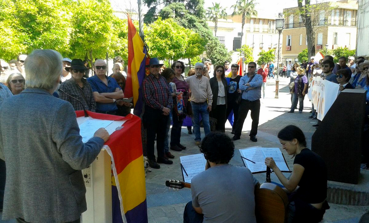 También interviene en el acto la plataforma por la Memoria Democrática de Jerez que, a través de su portavoz Cristóbal Orellana, sostiene que está, desde su constitución en diciembre de 2014 tras la colocación del busto de Pemán en el Villamarta, “clamando dignidad, justicia y reparación para las víctimas del franquismo en una esquina olvidada de la ciudad ante un pequeño y oxidado monolito que, en realidad, si hubiera dignidad y respeto, debería ser un gran monumento a la libertad y estar ocupando un lugar muy céntrico de nuestra ciudad”.