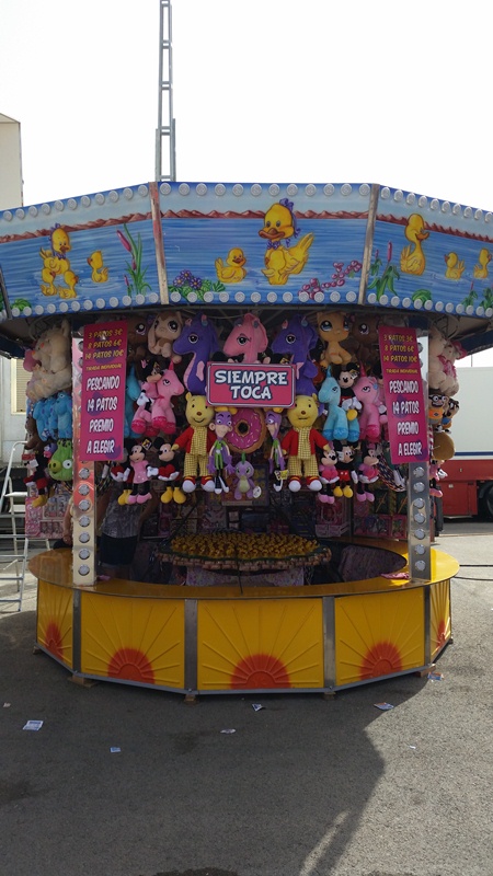 Luisa lleva más de 40 años al frente de uno de estos puestos. La felicidad de los más pequeños es una recompensa para ella después de pasar casi 24 horas al frente de la tómbola. “He estado cuidando Los Patitos desde la antigua feria del vino de Jerez, que era en septiembre, hasta la que conocemos hoy en día que es la de mayo. El puesto de los patitos es un clásico para todo feriante. Rara es la feria en la que nadie participa en este lugar y se lleva alguno de los regalos que ofrecemos. El siempre toca es un aliciente para todos sobre todo después de que las reglas del juego hayan ido variando. Ahora si se gasta por ejemplo 3 euros por tres patitos hay un regalo de su categoría, pero si por ejemplo el niño quiere un peluche grande, se lo puede llevar sin problema pescando tres patitos por 10 euros”.