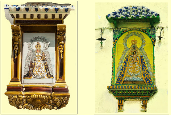 En última instancia, estos cuadros, paneles o retablos cerámicos, no son sino un testimonio de la devoción de los antiguos propietarios de los lugares donde los encontramos, representándose en ellos escenas muy variadas en las que no faltan imágenes de Cristo, de distintos Santos y, especialmente de la Virgen María. Hoy, día en el que se celebra la Virgen de la Merced, patrona de Jerez, hemos querido ofrecer a los lectores una muestra de algunos de esos azulejos devocionales dedicados a esta imagen.