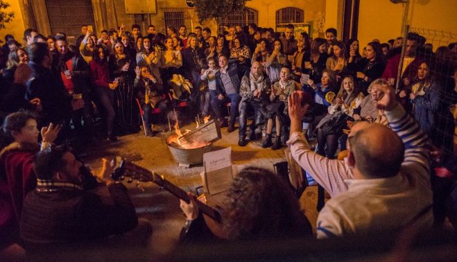 Una mujer bailando en una pasada Zambomba en el patio de La Atalaya, en Jerez. FOTO: JUAN CARLOS TORO.
