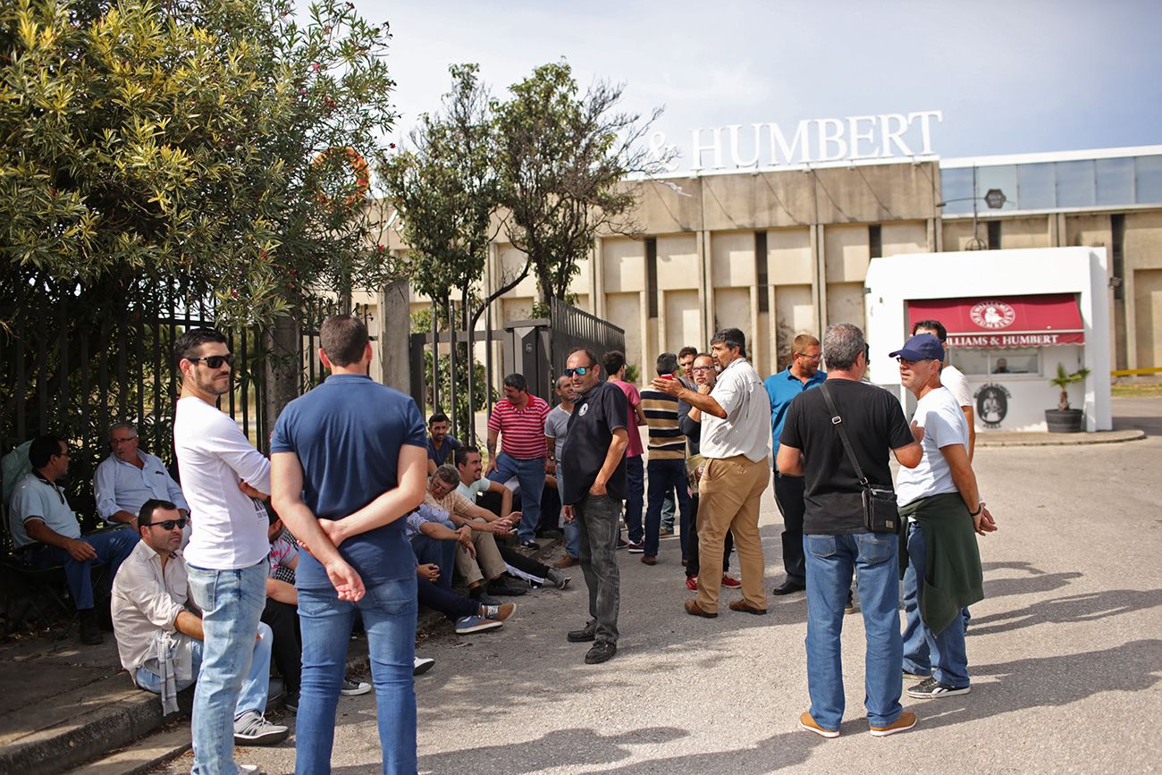 “En dos semanas de huelga pierden más dinero que lo que estamos pidiendo”, señala un trabajador que se manifiesta frente a Williams & Humbert. “La gente de mono (de trabajo) somos los que estamos aquí”, proclama otro de los manifestantes. 74 trabajadores, entre producción y administración, tiene la bodega. Solo uno y 15, respectivamente, acuden a su puesto de trabajo. Normalmente en producción trabajan unos 50, por lo que la jornada, se presupone, no es muy fructífera para la firma.