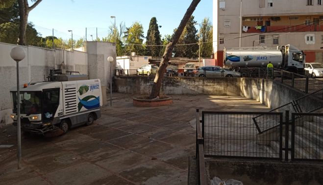 La delegación de Servicios Públicos de Jerez, que lidera el teniente de alcaldesa Jaime Espinar, alertado por las quejas vecinales, ha intervenido en la mañana de este viernes en la barriada.