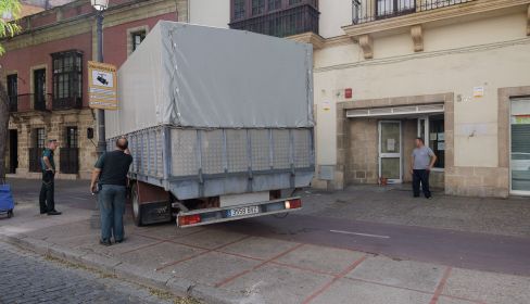 El destino de los enseres retirados es la Comandancia de la Guardia Civil de Cádiz, donde serán reutilizados los muebles que quedaron sin uso en las antiguas oficinas de la Seguridad Social.
