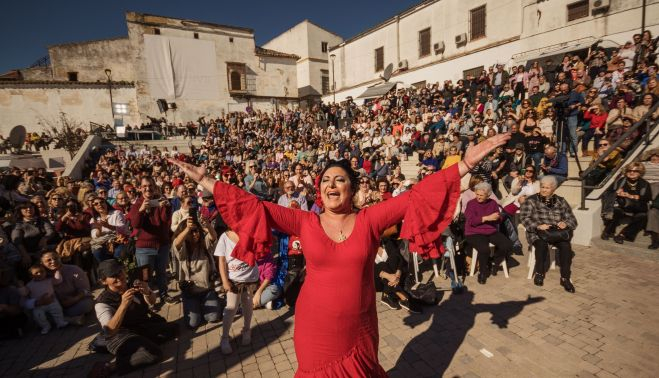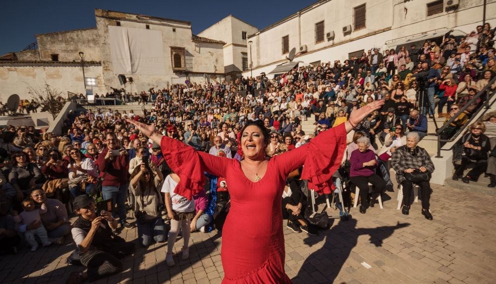 Entre tanto, en el escenario, el compás de rumbas, coplas, recitados y flamenco se sucedía en una fiesta que envolvió a todos. El Año Lola no ha podido empezar mejor. Canturreo en corrillos, palmas a compás y mucho y movimiento de caderas y manos dentro y fuera del escenario, especialmente encendido con la gente de Alalá tras el cante prístino, pausado y fidedigno de Lucía. Soto puso ánge y gracia a sus inspiración por Lola y Macarena, contundente y maestra.