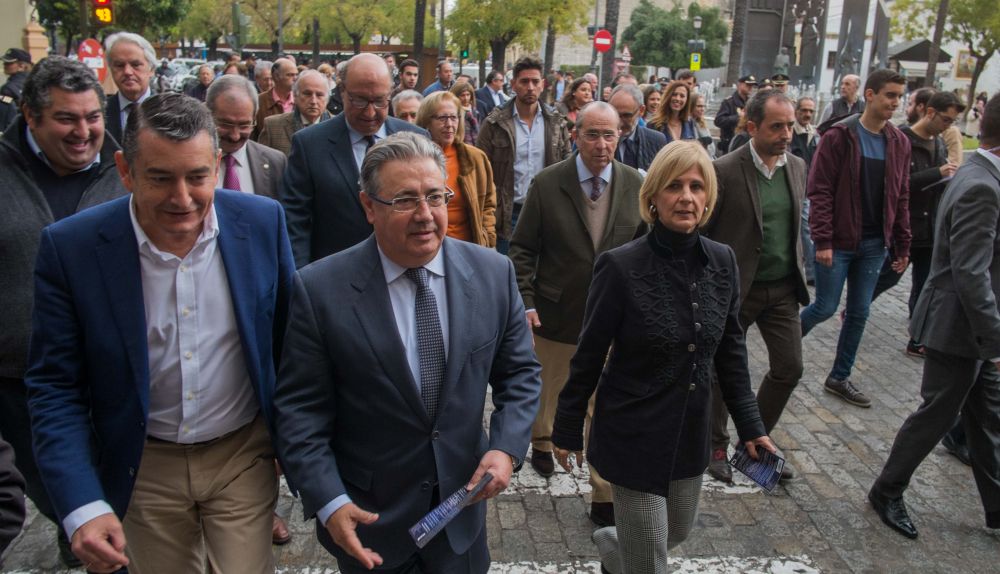 El ministro Juan Ignacio Zoido presenta en Jerez la campaña 'Comercio seguro', activa hasta el 8 de enero, por la que se reforzará la presencia policial en zonas de gran afluencia.
