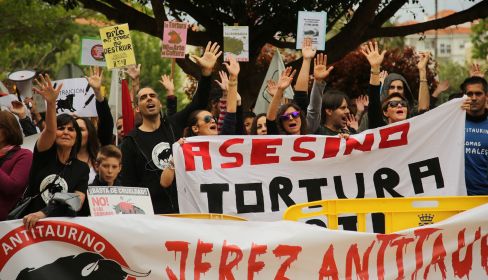 En paralelo, el colectivo antitaurino de Jerez ha iniciado una recogida de firmas en change.org para acabar con "las fiestas con sangre" en la ciudad. "Pedimos —expresan— que se supriman todo tipo de actos y subvenciones taurinas en la ciudad de Jerez de la Frontera. Somos conscientes de la cantidad de familias que pasan penurias, niños sin escolarizar, falta de puestos en comedores infantiles y faltas de ayudas, para que nuestro Ayuntamiento sí haga donaciones de fondos públicos a entidades taurinas y a la escuela municipal. Que esas cifras se donen a asociaciones y que se supriman definitivamente los toros en Jerez. La gente está cansada de esta barbarie, de esta manera de asesinar animales, que toda España los está suprimiendo de sus agendas festivas y pedimos que Jerez se una definitivamente a eliminar totalmente las corridas de toros". "No queremos más sangre por diversión. Matar no es divertido en ninguna de sus formas. No al maltrato animal. Fin de la tauromaquia en Jerez", proclaman en la web de recogidas de firmas.