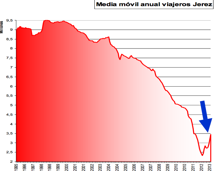 récord de 9,4 millones de viajeros de 1998 pero infinitamente más aceptables que las actuales, prácticamente las mismas que se contabilizan antes de arrancar la legislatura. En esta década el billete ordinario ha sufrido un incremento de un 22% (de 0,90 a 1,10 euros). En paralelo, el