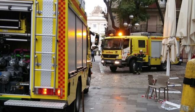 Bomberos del Consorcio de Bomberos de la Provincia de Cádiz en el parque de Jerez han intervenido esta mañana en un incendio en el interior de un almacén del restaurante Cruz Blanca, en la calle Consistorio —en un principio este medio, por error, publicó que se trataba del almacén de Albores, restaurante que no ha tenido finalmente ningún tipo de problema—. El local, ubicado frente al Ayuntamiento, estaba cerrado y el humo se filtra por las rendijas de los huecos exteriores y por un respiradero en la parte alta de la puerta. Los bomberos inician la extinción desde el exterior por este hueco hasta que se persona el propietario con las llaves del local. Una vez abierto se accede al interior inundado de humo se localiza el foco del incendio y se completa la extinción. El fuego sólo ha afectado a cableado y algunas cajas almacenadas. Todo apunta a un origen eléctrico. La actuación se ha prolongado durante menos de una hora.