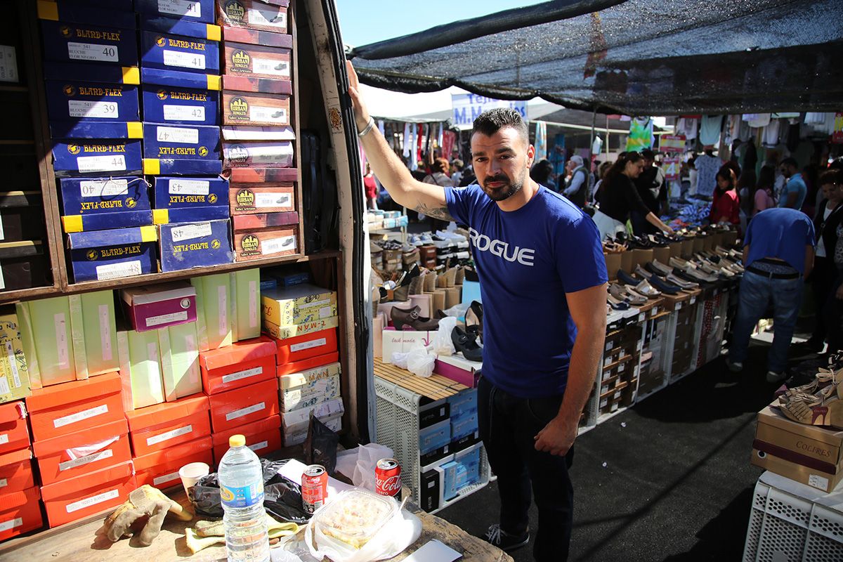 “Sólo intentamos sobrevivir. Gano cero euros, dedicándole diariamente a mi negocio 15 horas”. Fernando, jerezano de 30 años, heredó de su padre el puesto ambulante de calzado. Monta en el mercadillo de los lunes de Jerez, en Tarifa, Rota, Barbate, Conil y La Granja. Para hacerse con el género debe desplazarse hasta Elche, en Valencia, una o dos veces al mes. En total, unos 500 euros de lo que obtiene de la venta están destinados a pagar el gasoil, a lo que hay que añadir las tasas a pagar a los ayuntamientos de cada población en la que despliega su negocio cada día.