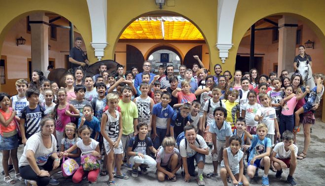 Cerca de 60 niños visitan la Escuela Andaluza de Arte Ecuestre para concluir los Campamentos Urbanos en el que han participado más de 300 niños del Distrito Oeste y del Distrito Sur. El teniente de alcaldesa de Sostenibilidad, José Antonio Díaz, ha participado en el acto de clausura acompañado del director de la escuela, Juan Carlos Román. José Antonio Díaz ha agradecido “la colaboración y la mano tendida de la Real Escuela al Ayuntamiento a la hora de concedernos estas visitas que vienen a enriquecer la programación que ofrecemos a los niños y niñas en los Campamentos Urbanos. Indudablemente, la Real Escuela es uno de los atractivos turísticos más importantes de Andalucía, nos abre sus puertas y los niños participantes pueden conocer así más en detalle una de las señas de identidad de nuestra tierra: el caballo”.