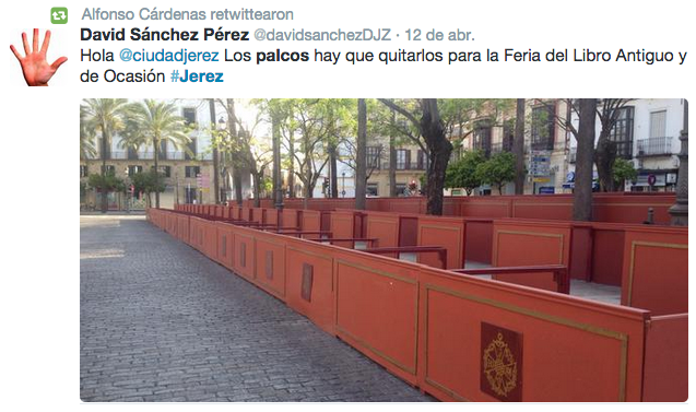 La delegación de Turismo, Cultura y Fiestas ha informado de que las labores de desmontaje y recogida del material de los palcos instalados con motivo de la Semana Santa finalizará entre este jueves y el viernes, con lo que la retirada de las estructuras, según esta concejalía, se ha llevado a cabo "en tiempo y forma, exactamente en diez días hábiles, adelantándose incluso al plazo establecido en el convenio con la empresa, estipulado en quince días". En la red ya se habían registrado críticas de jerezanos por la presencia todavía de estas enormes estructuras, y el vertedero de desperdicios que bajo ellas se acumula, en plazas y zonas céntricas de la ciudad.