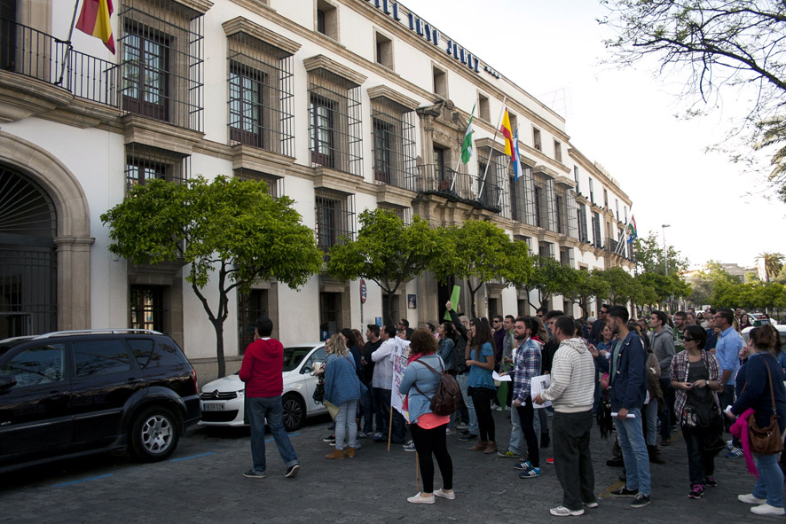 La primera de las reuniones fue el jueves 23 de abril con Javier Durá, delegado de Personal del Ayuntamiento de Jerez. En esta reunión, explica Lidia, Durá les entregó una copia del escrito solicitando la ampliación de los contratos a la Junta de Andalucía, excusándose porque no se pudo solicitar antes la ampliación ya que los trámites burocráticos retrasaron todo hasta el 16 de abril (precisamente el día que se manifestaron los beneficiarios del plan).