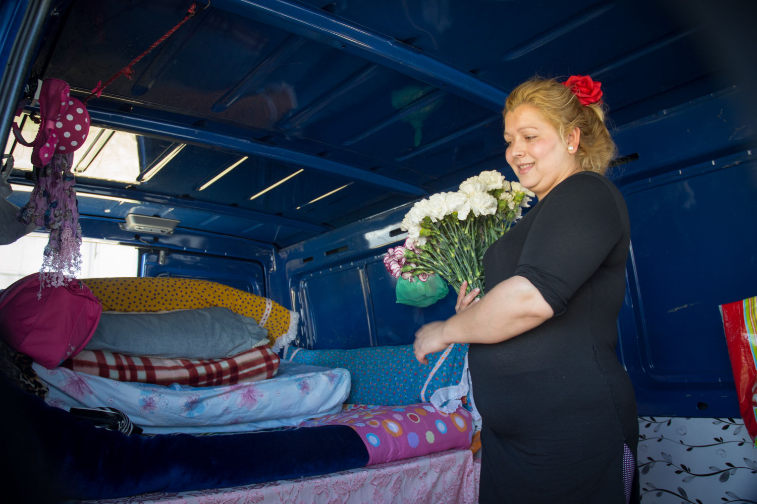 Mari Carmen, de 31 años, se levanta en torno a las nueve de la mañana. Al igual que el resto, lo primero que hace es la compra diaria. No tienen comida ni electrodomésticos, apenas unas botellas de agua y otras bebidas hay en la furgoneta, ésta, por cierto, ordenada e impoluta. “Esa es la cama de los niños (tiene la parejita) y encima el colchón nuestro que lo ponemos en el suelo (de la furgoneta) para dormir”. Ella no trabaja en otra cosa el resto del año. Su marido sí: se dedica a la chatarra y a la venta ambulante de fruta y verduras.
