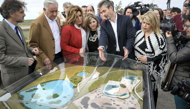 La presidenta de la Junta de Andalucía, Susana Díaz, visita la laguna situada entre Jerez y El Cuervo, cuya restauración contó con una inversión de casi ocho millones de euros a través del proyecto comunitario LIFE+.