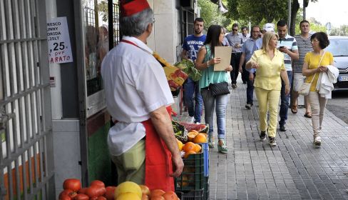 Mamen Sánchez recorre el barrio para recoger las reivindicaciones de las asociaciones.