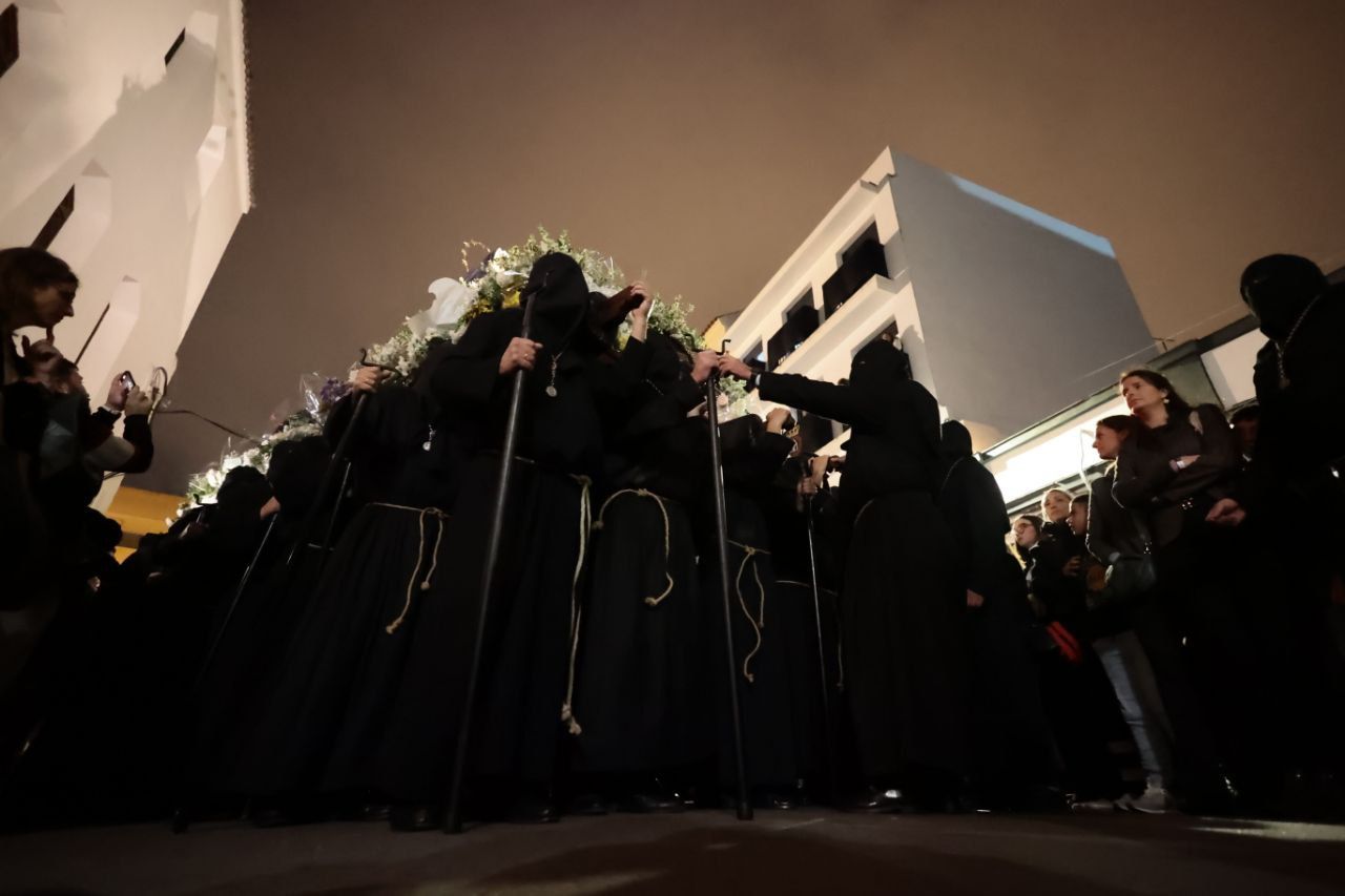 La cofradía de Amor y Sacrificio ya se ha recogido en Madre de Dios tras suspender la estación de penitencia. La precipitada vuelta comenzó en la plaza del Arenal donde giró hacia la Corredera y tomó el siguiente itinerario: Corredera, Calle Granados, Calle Campana, Pañuelo de la Yedra, Plazuela, Parroquia de Madre de Dios.
