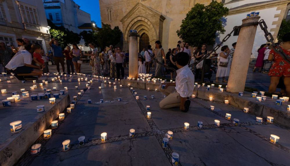 Un total de 10.000 velas han iluminado la plaza de la Asunción en Jerez este viernes. La VII Noche de las candelas, organizada por la asociación Aspanido, ha atraído a familias y amigos que han participado en este evento solidario a partir de las 21.15 horas.