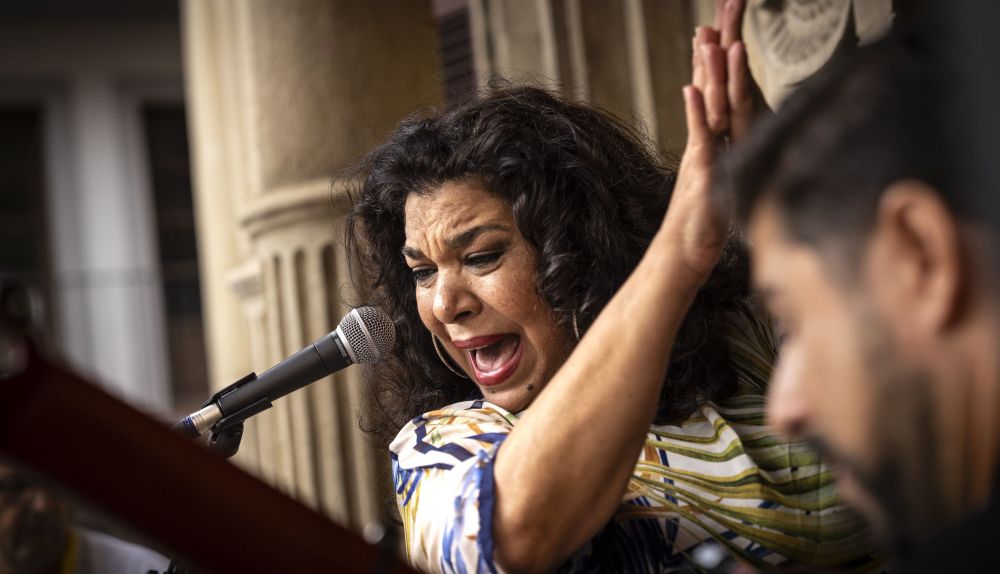 La voz de La Macanita se adueñó de la Plaza Consistorial de Pamplona en la mañana de ayer. Al marcar el reloj del Ayuntamiento las doce del mediodía, la cantaora jerezana salió al balcón para derrochar grandeza y un metal tan preciado como admirado. Hija de la tradición oral, su cante bebe de las fuentes de su barrio de Santiago, donde escuchó a Tío Sordera o a Tía Anica la Piriñaca.
