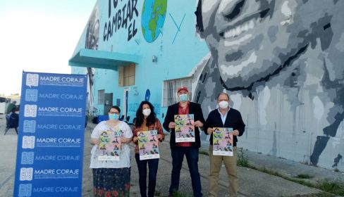 El acto de presentación, que se celebró en el exterior de la nave central de Madre Coraje con el fin de mantener distancias y medidas adecuadas por el Covid-19, contó con la participación de José Jiménez, Presidente de Madre Coraje, Isabel Palma, Responsable de Voluntariado de Madre Coraje, Dani Quiñones, de La Tarambana, y Rosa S. L., voluntaria de Madre Coraje.