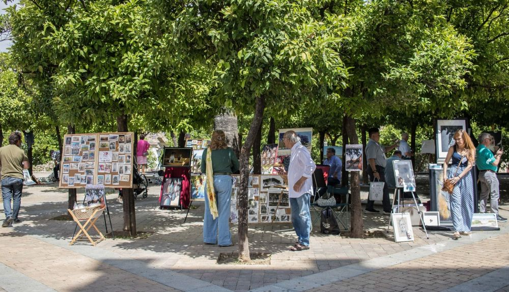 Maravillosa jornada de pinceles y cuerdas junto al Alcázar de Jerez. La exitosa iniciativa, promovida por la asociación de comerciantes del Centro Acoje y el Ayuntamiento de Jerez, está siendo un éxito de público y participación desde el pasado domingo y hasta este pasado martes, coincidiendo con la celebración de Vinoble en el conjunto monumental amurallado de la Alameda Vieja.
